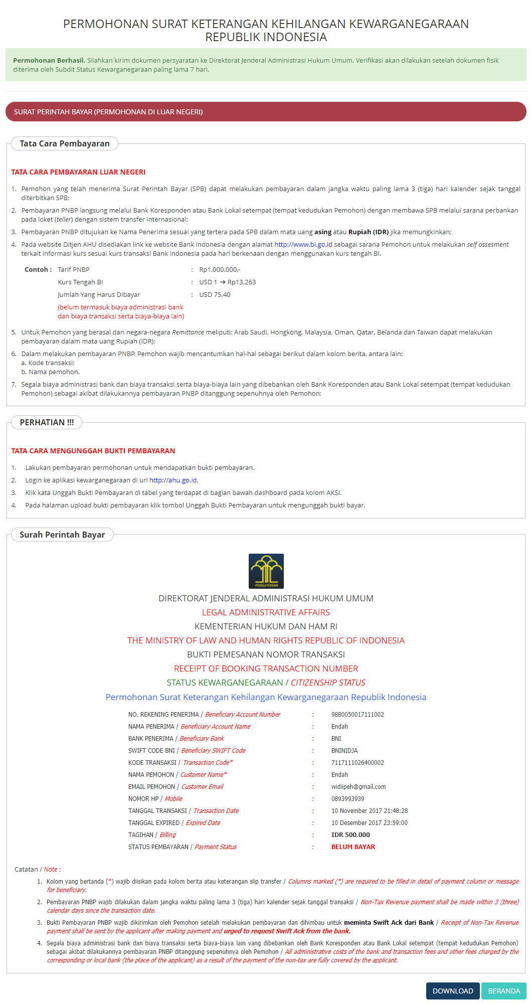 Permohonan Surat Keterangan Kehilangan Kewarganegaraan Ahu Online from panduan.ahu.go.id Jun 04, 2021 · kemenag tegaskan calon jemaah haji yang tarik setoran pelunasan tidak kehilangan statusnya kementerian agama memberikan kesempatan bagi jemaah yang batal berangkat untuk menarik kembali setoran pelunasan bipih yang telah dibayarkan. Jun 04, 2021 · 4. Apakah debitor sebagai salah satu subjek dalam kepailitan dapat melakukan perbuatan hukum dalam proses kepailitan? Proses permohonan online pada dukcapil online sleman selesai 14. Silahkan tambahkan saran anda sebelum melakukan 'logout' untuk memberi masukan kepada pelayanan online sleman. Jadi, pastikan bahwa pengajuan antrean paspor anda sudah disetujui dan masuk kuota harian sesuai tanggal yang dipilih. Dec 09, 2016 · 1. Jangka waktu program untuk afiliasi mulai berlaku pada tanggal shopee menyetujui pengajuan afiliasi untuk bergabung dengan program afiliasi, dan terus berlaku sampai diakhiri sesuai dengan bagian 8.2 atau 8.3 (jangka waktu).